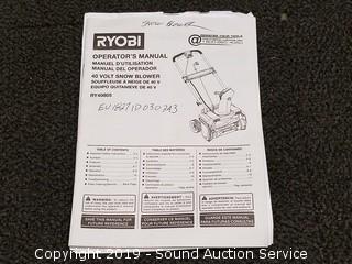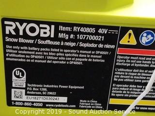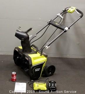 Lot #0279: Ryobi 40v Lithium Snow Blower w/Battery & Charger