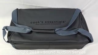 Discription: Casserole carriers are by Cook's Essentials, come with dividers and hot/cold packs. Picnic kit comes with wine glasses, napkins, placemats, utensils, plates, and can fit a casserole dish.