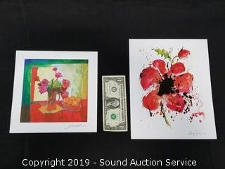 Discription: Includes: Dominic Pangborn "Abstract Poppy" Image Size 9-1/2" x 7" Seriolithograph in color on archival paper (signed in the plate), and Uval Wolfson "Breakfast Table" Image Size 7" x 7" Seriolithograph in color on archival paper (signed in the plate).