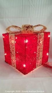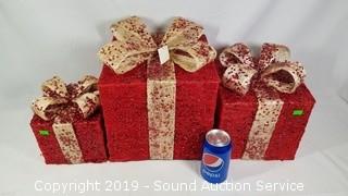 Lot #0246: 3 Graduating Sequin Adorned Lighted Present Decor
