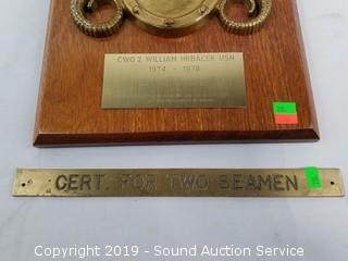 Lot #0200: 3 Naval Plaques & Brass Seaman Sign