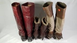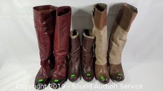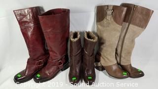Discription: Includes: Merona Faux Fur Lined Size 8.5, Fergi Leather Boots Approx. Size 8, and Lucky Brand Leather Boots Approx. Size 8. Approx. 11" to 17" H.