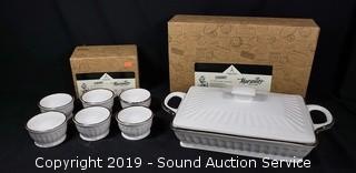 Discription: Both are new. You get 6 ramekins and (6) 10" rectangle covered casseroles.