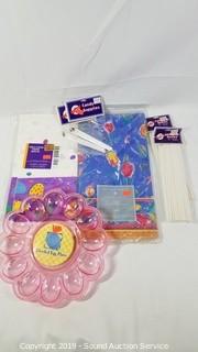 Discription: Includes: Easter Egg Display, Deviled Egg Plates, Placemats, Welcome Sign, Egg Shaped Sidewalk Chalk, and more.
