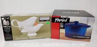 Lot #0360: Denmark 2pc Gravy Boat Set & 5qt Casserole Dish