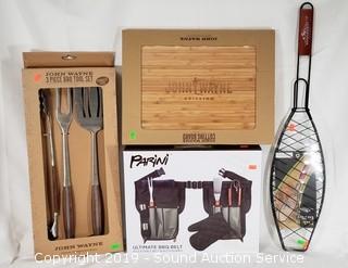 Lot #0373: John Wayne BBQ Set, Parini BBQ Belt & Fish Griller