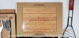 Discription: Also comes with q John Wayne Cutting Board. All appear to be new.