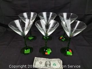 Lot #0390: Libbey Green Stem 7.5" Martini Glasses