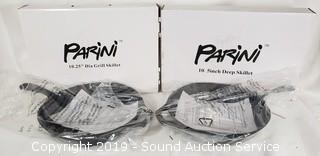 Lot #0380: New Parini Cast Iron Grill Skillet & Deep Skillet