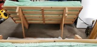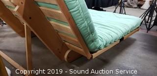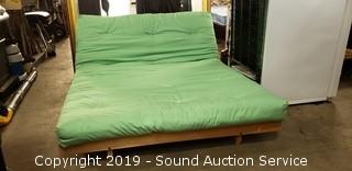 Discription: Green futon mattress removable cover, needs cleaned. Approx. 56" x 70".