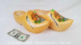 Lot #0404: Pair of Hand Crafted Holland Wooden Clogs - Large