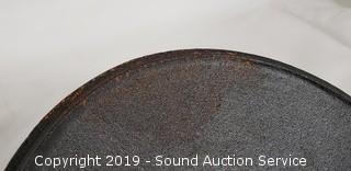 Discription: Dutch oven is 4qt one handle & part of lid has rust rest in excellent condition. 10.5" Cast Iron Round Griddle is NIP.