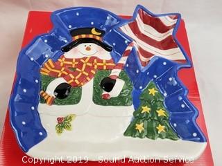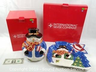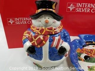 Lot #0182: Porcelain Snowman Cookie Jar & Chip & Dip