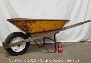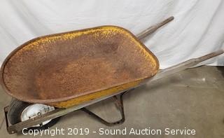 Lot #0044: Rustic Wooden Handle Steel Wheelbarrow