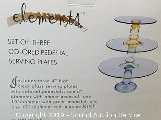 Lot #0277: Set of 3 Elements Colored Pedestal Serving Plates