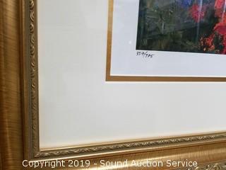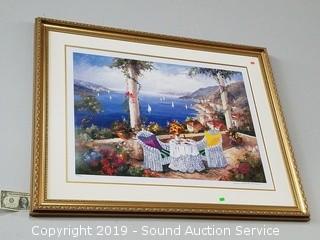 Discription: Known artist. Italian seaside villa scene. #357/775. Professionally gold gilt framed and matted with conservation clear glass. Overall 32" x 41".