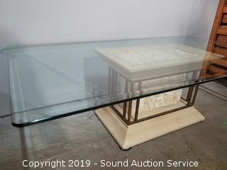 Lot #0129: Unique Decorative Beveled Glass Top Coffee Table