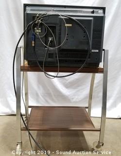 Discription: Approx. 13" H, 19" W, 15" D. Model C36IU. In good working condition. Comes with rolling TV stand. Stand is approx. 26" x 22" x 13".