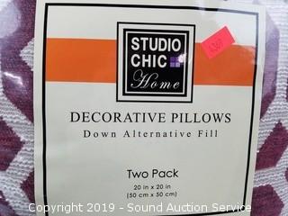 Lot #0020: 2pk Studio Chic Down Alternative Throw Pillows