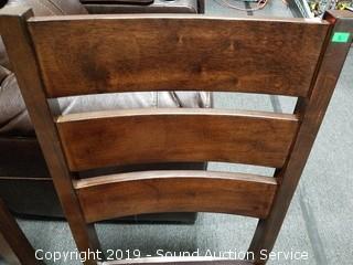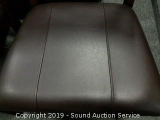 4 We assembled for pictures 2 are still unassembled in original boxes. PU leather seats, dark stained. Approx. 40" H x 21" W x 20" D.