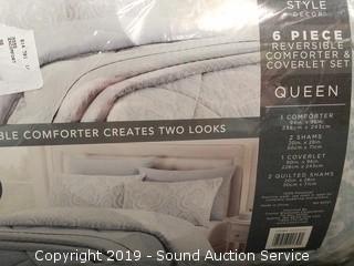 Lot #0277: 6pc Reversible Comforter & Coverlet Queen Set