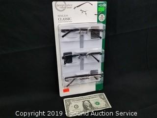 Lot #0028: Design Optics Rimless Classic +2.0 Reading Glasses