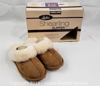 Lot #0341: New Ladies Shearling Chestnut Slippers S:8