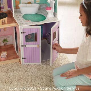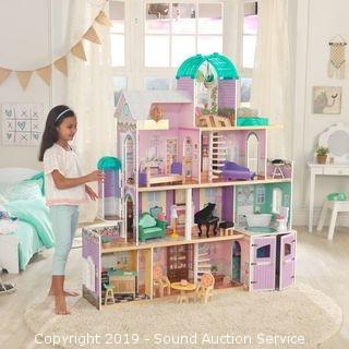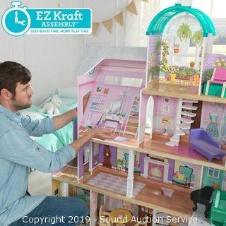 Inspire big imaginations to create fun adventures at playtime with the KidKraft Rosewood Mansion Dollhouse with EZ Kraft Assembly?! This beautifully designed mansion offers a classic design packed with sleek, modern features like a gliding exterior elevator, a rooftop hot tub and a greenhouse with a transparent dome ceiling. Age Range: 3+. Approx. 54.3" x 15.6" x 59.25". Made of plastic and wood. Some assembly required. $249 retail value.