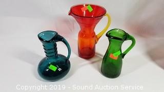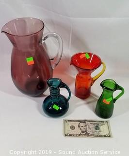 Lot #0383: 4 Colorful Art & Crackle Glass Pitchers
