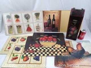 Lot #0314: 8 Wine Theme Wooden Placemats & Wine Bottle Box