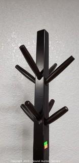 Lot #0344: Black Wooden Hall Tree Coat/Hat Rack
