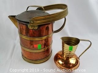 Lot #0258: Copper and Brass Pitchers, Compote, Decor & More