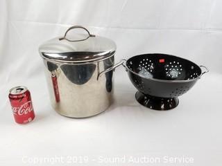 Lot #0252: Enamelware Colander & Farberware 12qt Stock Pot