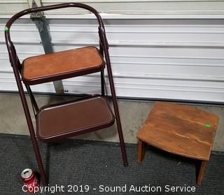 Lot #0209: Folding Step Ladder & Wood Step Stool.
