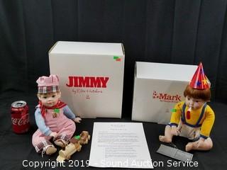 Both come with original boxes. Includes "Mark" by Sonja Brian, no COA, and "Jimmy" by Elke Hutchins, comes with COA and all accessories. Approx. 10" tall.