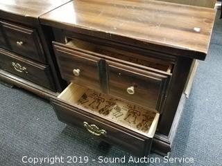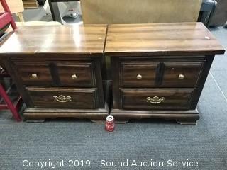 Lot #0009: Pair of Vtg Dark Stained Pine 2-Drawer Nightstands
