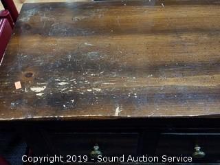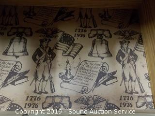 Some scuffs, scrapes and general wear to the finish. Drawers are line with image of 200 year anniversary of declaration of independence 1976. Approx. 26" T x 27" W x 16"