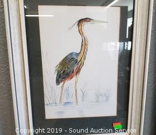 Lot #0325: Vtg. Original Water Color & Crane Artwork