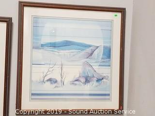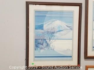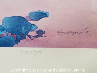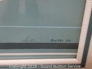 Some are signed. Includes: Artist S/N "September Mountain" Print (Some molding on the edge of the paper, not effecting the artwork, signed "Emaryon 89", #351/400), Black & White Print, A/S "Ginter" 1983 Serigraph, and 2 Other "Ginter" Pieces (Do not see a signature, same style as the one that is signed). Largest is 30-1/2" x 30-1/2". Smallest is 19" x 16-1/2".