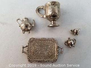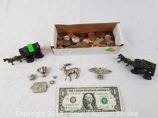 Lot #0110: Cast Figures, Foreign US Coins & Pencil Sharpener