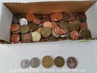 Item Description: Coins include: Kenya currency, Franc, Pfennig, dimes, pennies, nickels, and more.