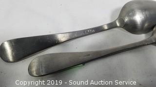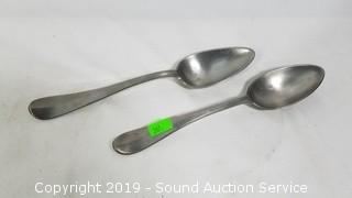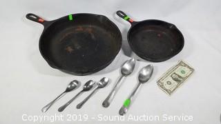 Lot #0267: Cast Iron Skillets, Vtg. Pewter & Other Spoons
