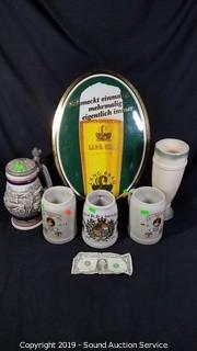 Lot #0259: German Beer Mugs, Steins & Tin Sign