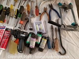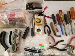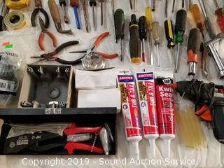 Item Description: Includes: Bits, fencing, gate hardware, nail strips, nail gun, riveter, and more.