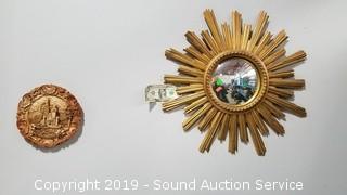 Lot #0296: MidCentury Starburst Mirror & High Relief Decor