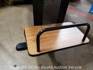 Item Description: Wood finish veneer with metal base. Approx. 34" H, 55" W, 23" D.