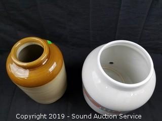Lot #0228: Pottery Crock & Partial Drink Dispenser