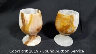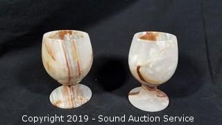 Lot #0262: Quartz Stone & Travertine 4" Goblets