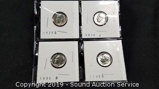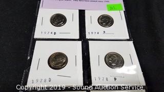 Item Description: Includes: 8 BU Roosevelt Dimes 1974-1981 P & D, (8) 2009 Lincoln Cents, and 2004 & 2005 Westward Journey Jefferson Nickels.