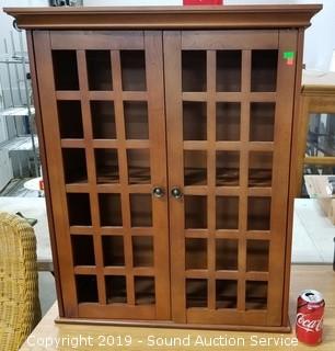 Lot #0019: Small Solid Wood Lattice Door Curio Cabinet